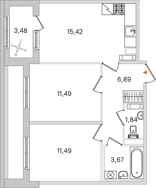 - 15.42 м²