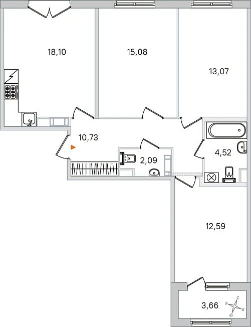 3-комнатная, 76.18 м²