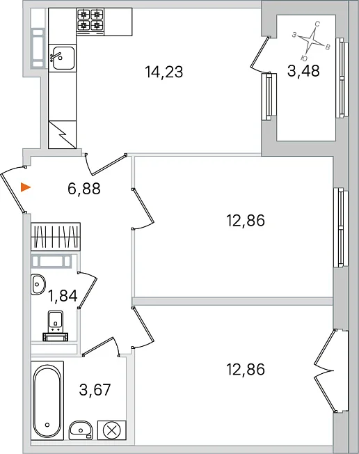2-комнатная, 52.34 м²