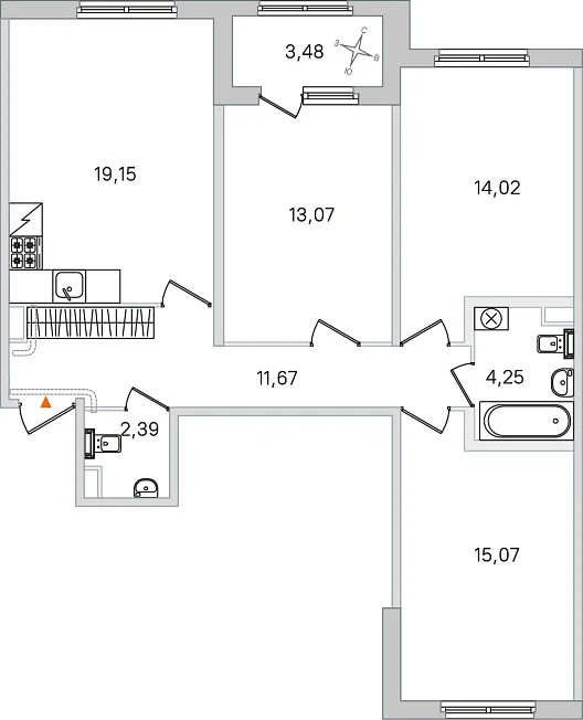 3-комнатная, 79.62 м²