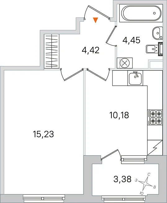 1-комнатная, 34.28 м²