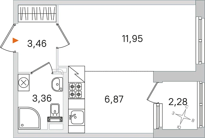 - 11.95 м²